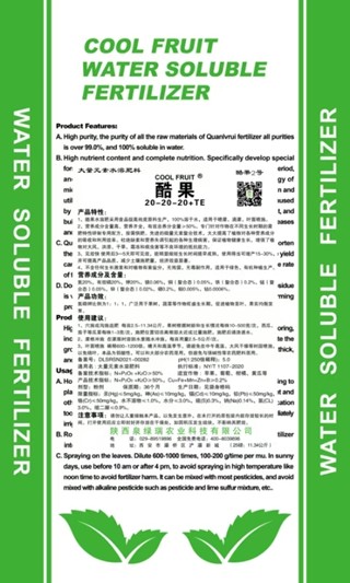 陕西泉绿瑞农业科技有限公司是以经营新型进口肥料、推广先进生产技术为主的科技型企业。公司秉持“服务中国农业,关注百姓健康”的发展观念,积极引进国外先进农业技术和配套的优良生产资料(基肥、叶面肥),为我国大江南北瓜果、蔬菜等经济作物,茶叶、花卉、药材作物产业化发展提供安全保障。 公司产品从美国引进4大类:全营养全水溶肥3个系列产品、大量元素和中微量元素产品、海藻酸系列产品及单一元素系列产品,共10个品种,28个单品。 公司系列产品对瓜果、蔬菜的重茬、腐烂病、黄化病、小叶病、溃疡病、根腐病、枝干病、苦痘病及果品的黑点病、红点病均有很好的预防和治疗作用。使用该产品后经济作物经济效益连年增长。 使用公司系列产品,合作第一年有四看:一看果树叶片与上年相比有何变化,二看果实的果面、色泽、果个、糖度与上年相比有何变化,三看果树的剪锯口和腐烂病伤口愈合与上年相比有何变化,四看果树花芽分化与上年相比有何变化。同时,公司技术人员根据南北区域不同的瓜果蔬菜作物,为作物配制周年营养套餐。欢迎咨询,共同发展。